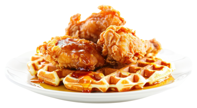 Whimsical Waffles: A Heavenly Plate of Syrupy Delights on Transparent PNG Background.