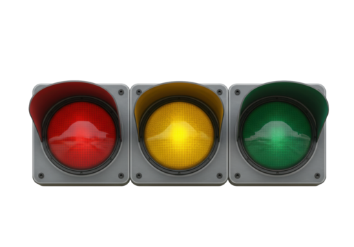 Isolated Traffic light with red yellow green lens, light signal, transportation equipment