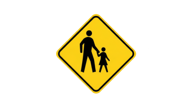 Pedestrian Crossing Symbol: This image presents a quintessential pedestrian crossing sign. The sign depicts a parent figure, hand in hand with a child, walking forward.