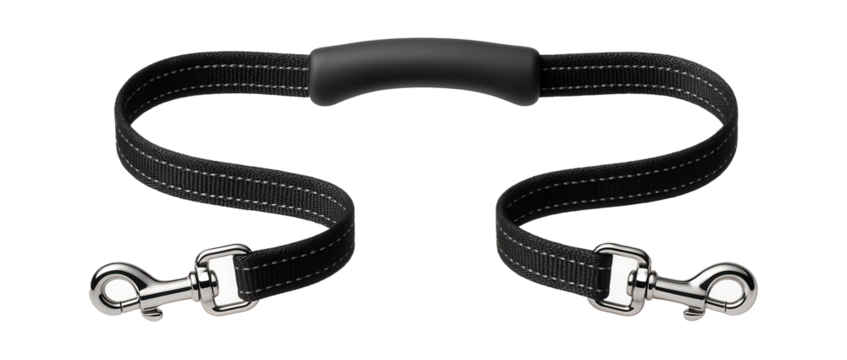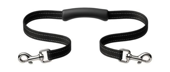 A double-ended leash for walking two dogs simultaneously around the local streets.
