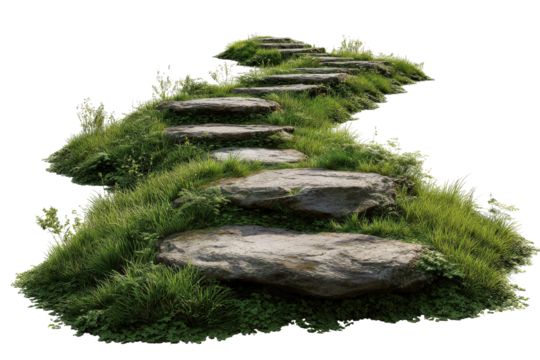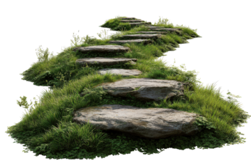 A winding path, constructed of large, flat stones, leads upward. The background is isolated