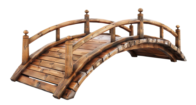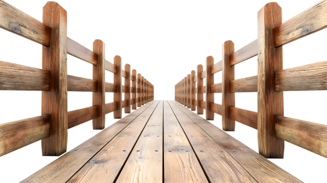 Long wooden pier with railings extending into the distance isolated on transparent background