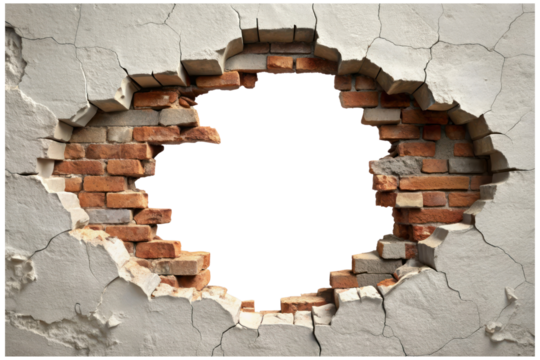 broken brick wall with hole transparent background