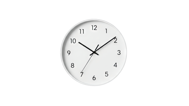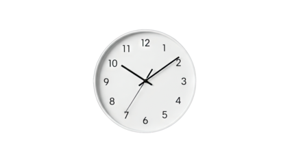 PNG Minimalist white wall clock with black hour and minute hands on clear display