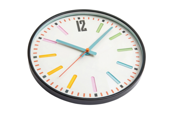 Colorful wall clock displaying the time in a vibrant, rainbow gradient design