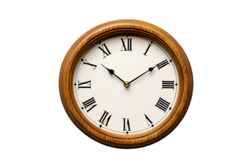 Elegant cream colored round wall clock with roman numerals isolated on transparent background