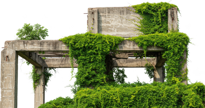 Overgrown Ruins Lush Greenery Covering Abandoned Concrete Structure