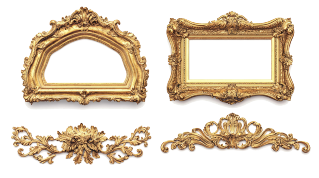 Antique Gold Baroque Picture Frames on Transparent Background Generative AI