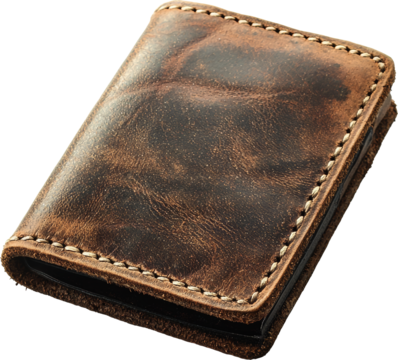 Stylish black leather wallet on high fidelity product minimalist design studio setting isolated on transparent background png