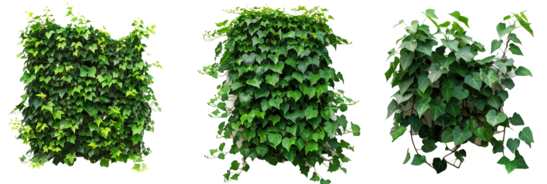 set of rainforest creepers with glossy leaves and thick growth, creating lush green walls, isolated on transparent background