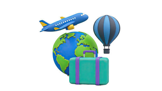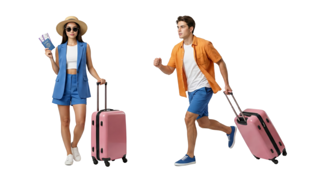 Stylish luggage set ready for vacation travel and adventure to exotic destinations worldwide easily carried