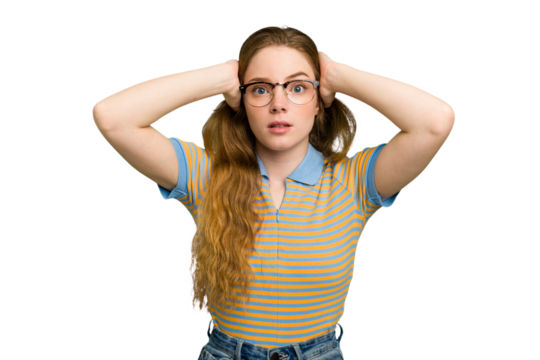 Young caucasian redhead woman isolated covering ears with hands trying not to hear too loud sound.