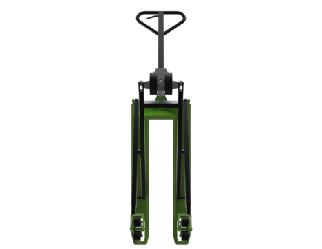 Efficient Green Pallet Truck: Modern Industrial Material Handling for Warehouse Operations. High-Quality 3D Rendered Hand Pump Jack Isolated on Transparent Background for Logistics and Freight.