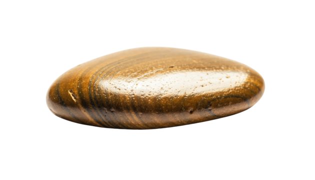 Polished brown stone with smooth surface against a bright white background casting a soft shadow high-key lighting with cutout object