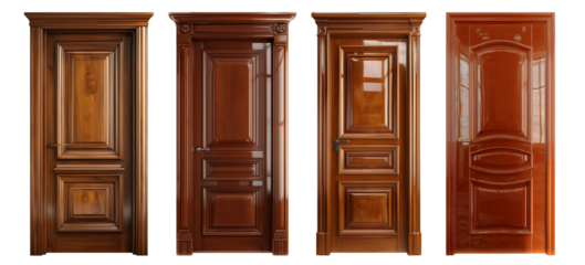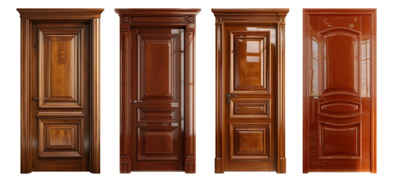 lacquered wooden door with glossy finish warm tones smooth reflections and refined detailed panel structure in realistic view