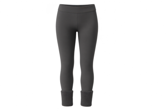 Dark grey warm leggings with fluffy cuffs, isolated on transparent background