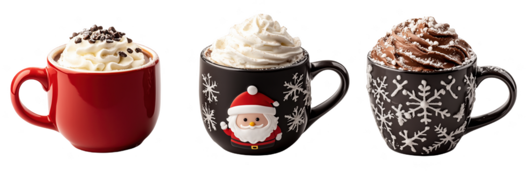 Delicious varieties of homemade hot chocolate served in festive mugs during winter