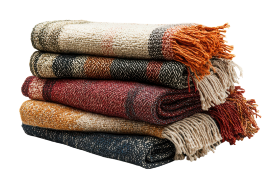 Small house wrapped in a warm blue knitted scarf isolated on transparent background. House wrapped in blue scarf isolated on white background.
