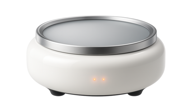 Ceramic mug warmer for use in a cozy living room, featuring an automatic shut-off feature for safety.