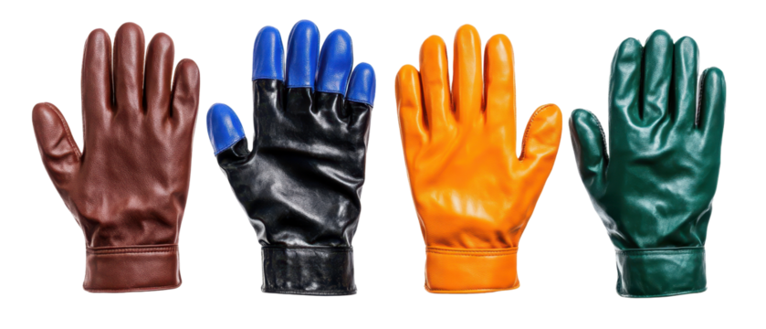 Colorful gloves for various outdoor activities. transparent background