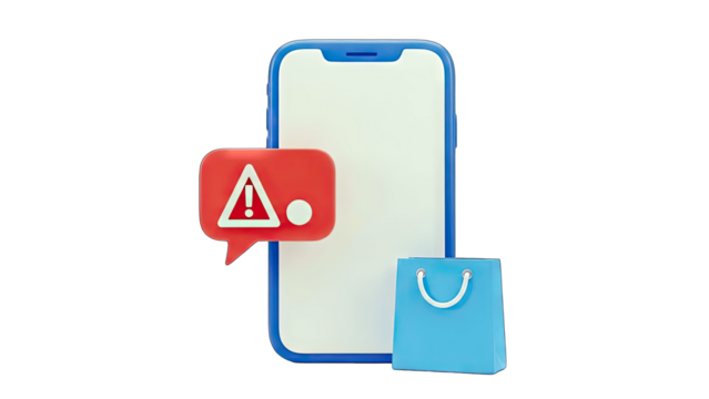 Smartphone with Warning Message and Shopping Bag - Online Shopping Alert