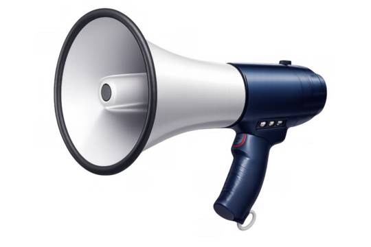 Handheld megaphone projecting a loud announcement, communication tool for protest, marketing, or urgent news broadcast