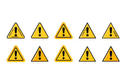 Eight diverse prohibition and warning signs isolated on a transparent background