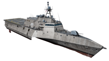 Modern naval destroyer warship on transparent background isolated on transparent background