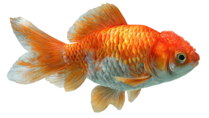 Vibrant orange and white goldfish swimming gracefully with a distinctive warty head isolated on transparent background