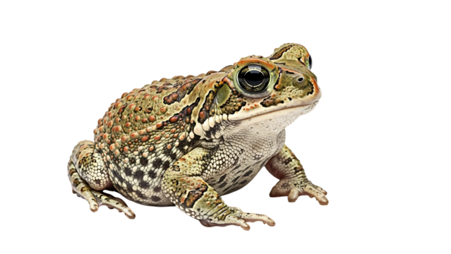 Big warty toad with bulging eyes staring forward, cut out transparent
