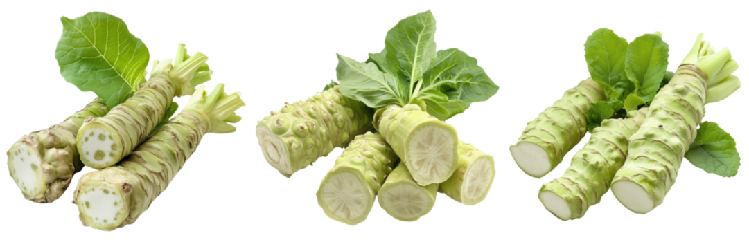 PNG set of wasabi root isolate on transparent and white background