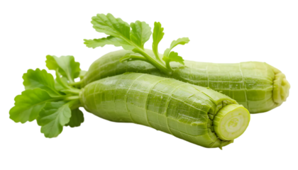 Fresh Wasabi Root with Green Leaves Isolated on a Transparent Background
