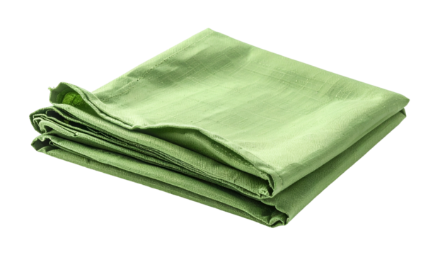A neatly folded square of light green textile rests on a dark background, its soft fabric showing gentle creases