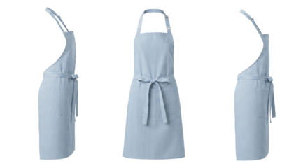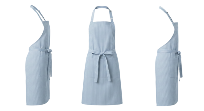 Striped Blue Apron Set: Front and Side Views, Isolated on White Background