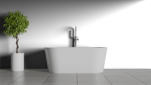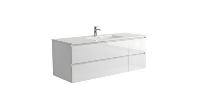Modern White Ceramic Washbasin with Chrome Faucet, Front View, isolated on transparent background PNG