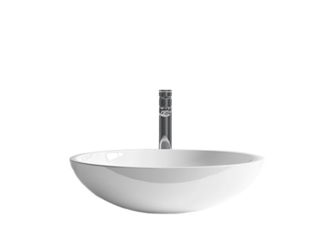 Modern white ceramic vessel sink with chrome faucet isolated on transparent background