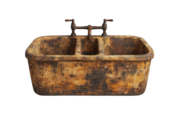 A Gleaming White Kitchen Sink With Three Compartments and a Modern Chrome Faucet  isolated on White Background ,PNG. AI Generated