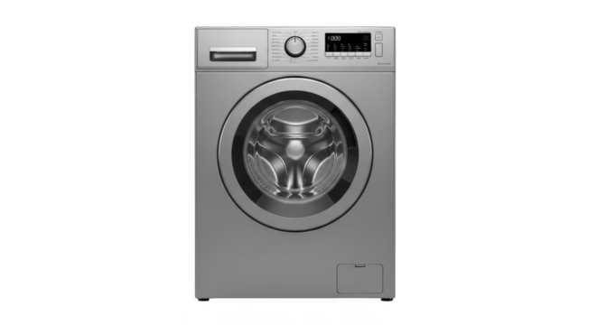 Front-loading washing machine with digital display and silver drum