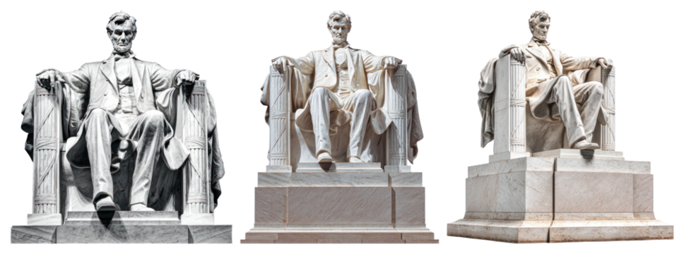 PNG Three iconic Lincoln statues displayed, element set on transparent background