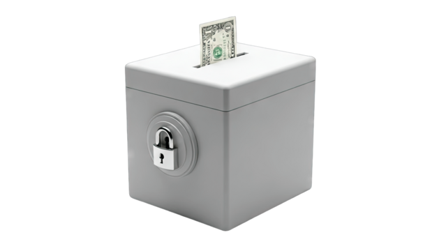 Money Box with Dollar Bill and Padlock - Financial Security Concept