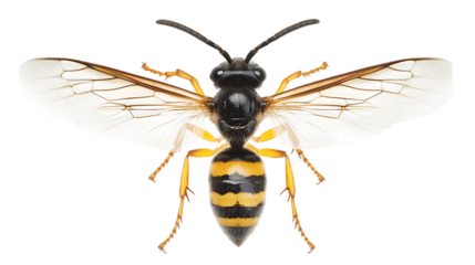 Close-up of yellow and black wasps showcasing their patterns and structures in natural habitat on a white background or PNG
