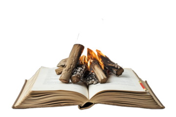 Campfire illustration with logs and flames on transparent background