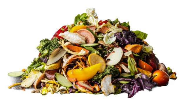 Organic Food Scraps Compost Pile With Banana Peel Eggshells and Vegetable Leaves on Transparent Background