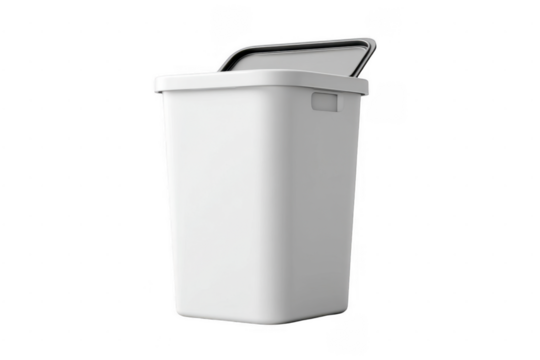 White Plastic Waste Bin Modern Step Trash Can with Lid isolated on transparent background