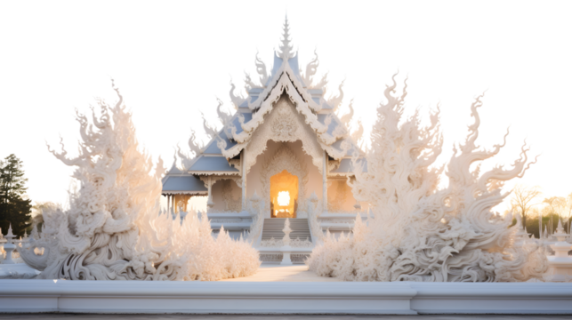 Exquisite Decorations at Wat Rong Khun White Temple During Enchanting Sunrise