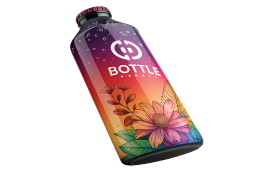 Close-up of water bottle in geometric art isolated on transparent background