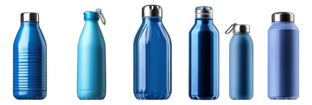 Set of pink colour stainless steel bottle isolated on a transparent background