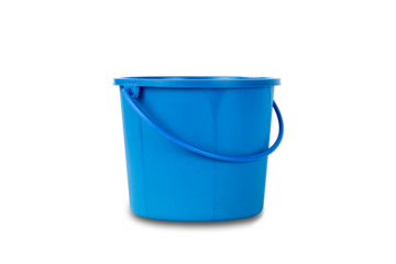 Overhead shot of a blue plastic bucket with handle isolated on transparent background