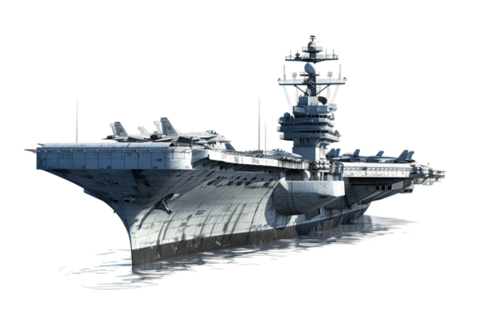 Nuclear-Powered Aircraft Carrier Isolated on Transparent Background