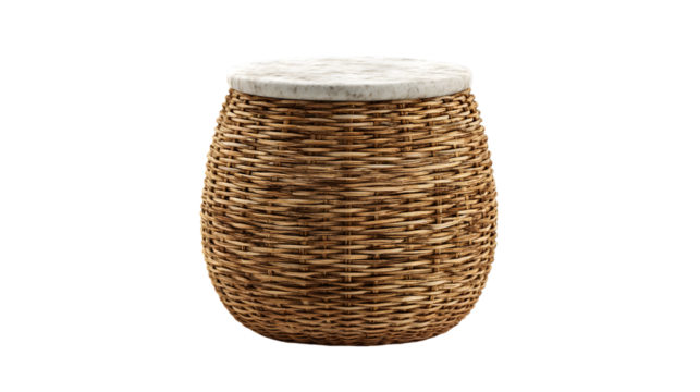 Handwoven rattan place mat isolated on transparent background, decorative png style mat for natural home decor and rustic dining table settings.